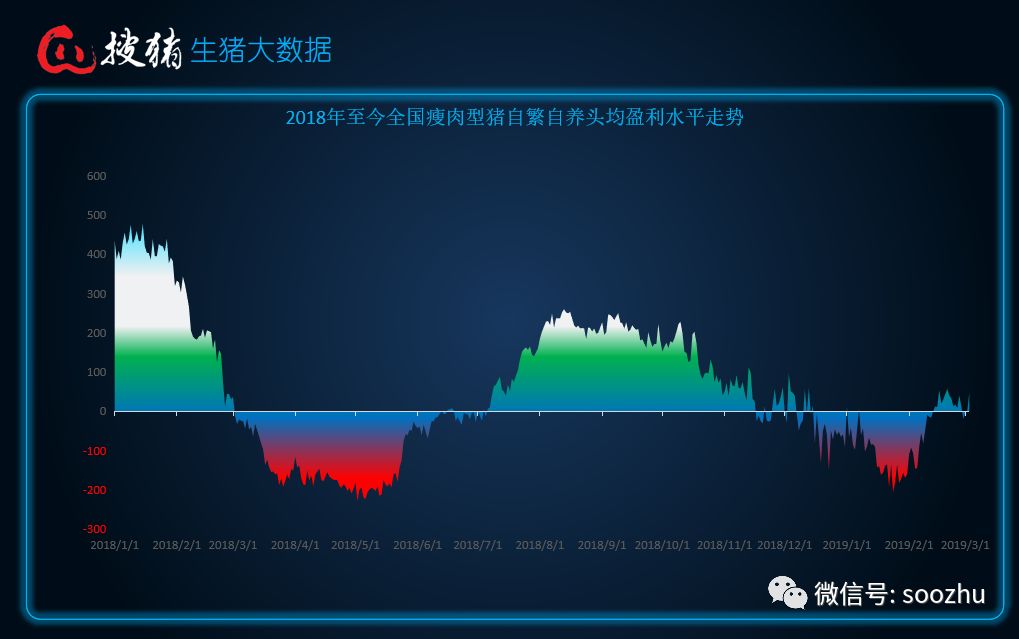 全国生猪市场的平均盈利情况,在2018年这一年中,大概出现了的不到10个月时间的亏损,就目前情况而言,全国大部分地区已逐渐摆脱亏损情况.......