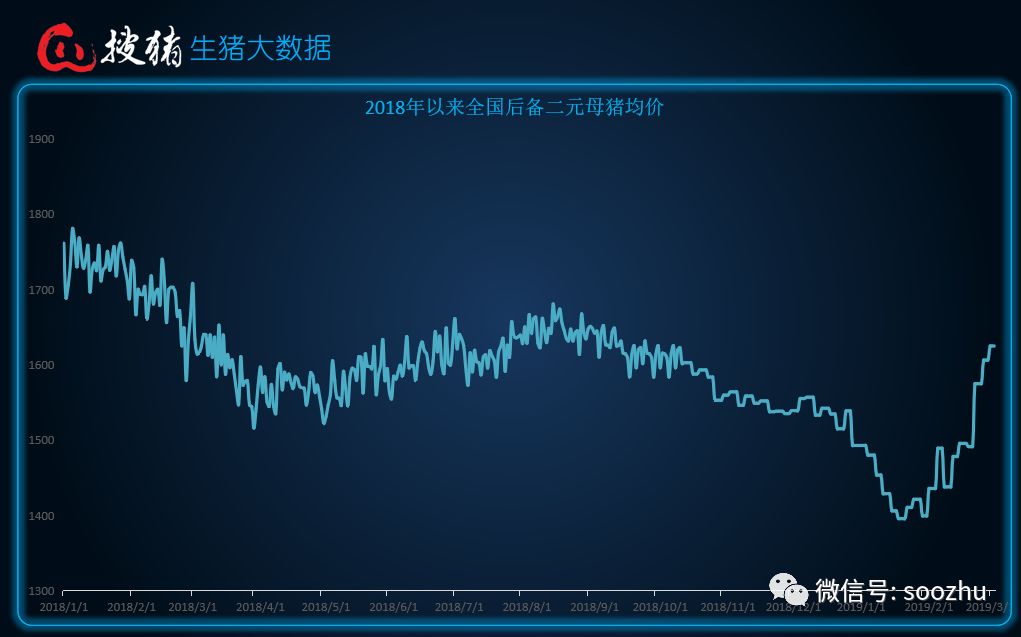 后备二元母猪的补栏及价格情况:随着仔猪价格的飙升,肥猪价格的震荡,随之也带动了二元母猪的价格上涨,补栏情况逐渐上升,其价格也要逼近1700元/头,后期还有涨幅的趋势......