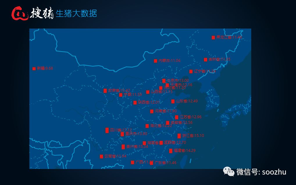 在这两张图中可以看出:全国瘦肉型猪出栏均价呈明显的止跌反弹迹象,北方地区的生猪价格趋于11.5-12元/公斤,而南方地区的高价地带,如四川、贵州等地的均价基本在15元/公斤以上左右,南方整体猪价的涨势,相对来讲较为平缓,所以,未来很有可能出现,南北方生猪价格倒挂的形势.......