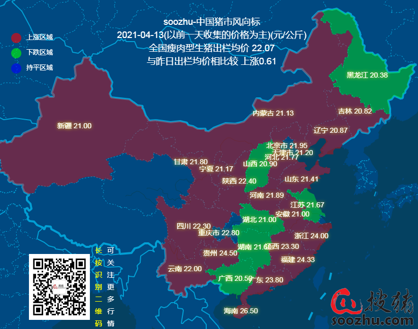 4月13日评:今日全国瘦肉型猪出栏均价22.07元/公斤