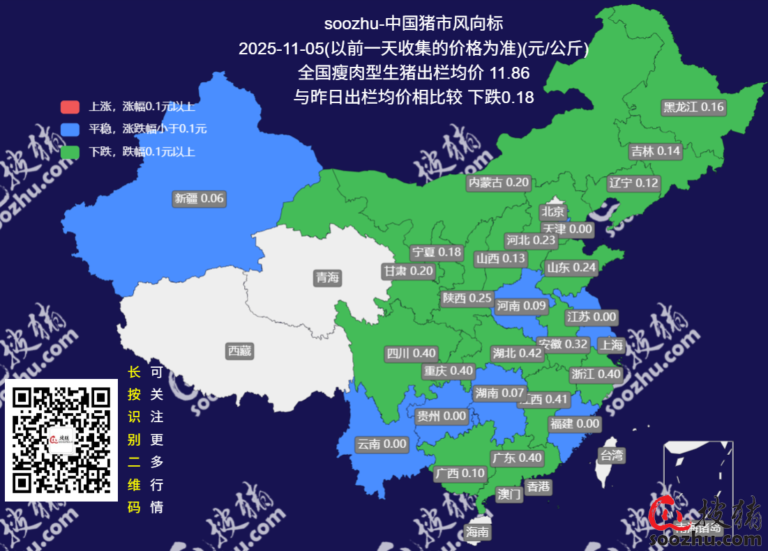 11月5日评:今日全国瘦肉型猪出栏均价11.86元/公斤