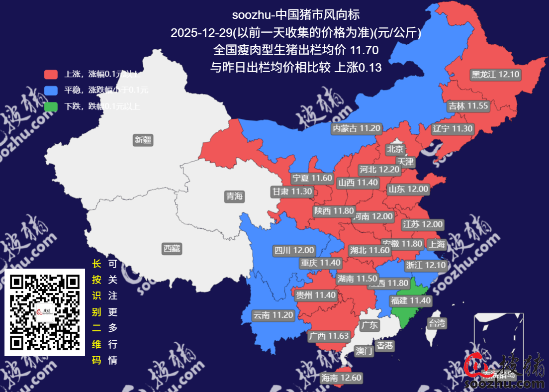 12月29日评:今日全国瘦肉型猪出栏均价11.7元/公斤