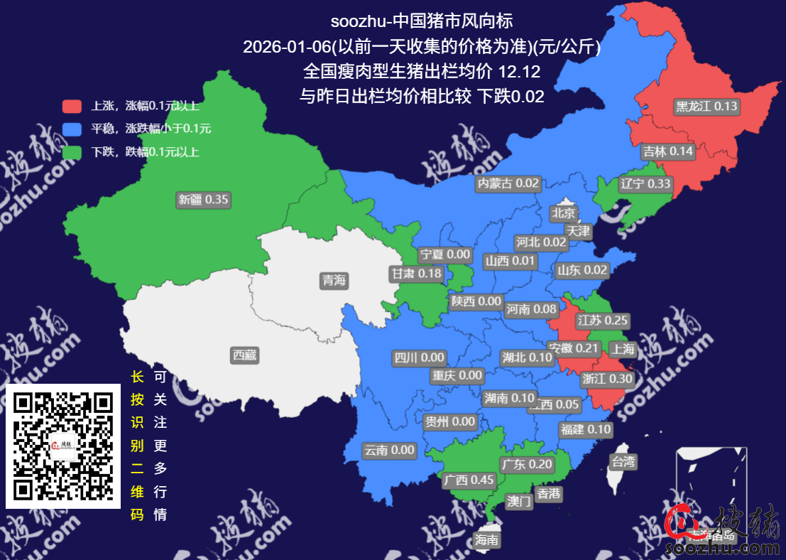 1月6日评:今日全国瘦肉型猪出栏均价12.12元/公斤