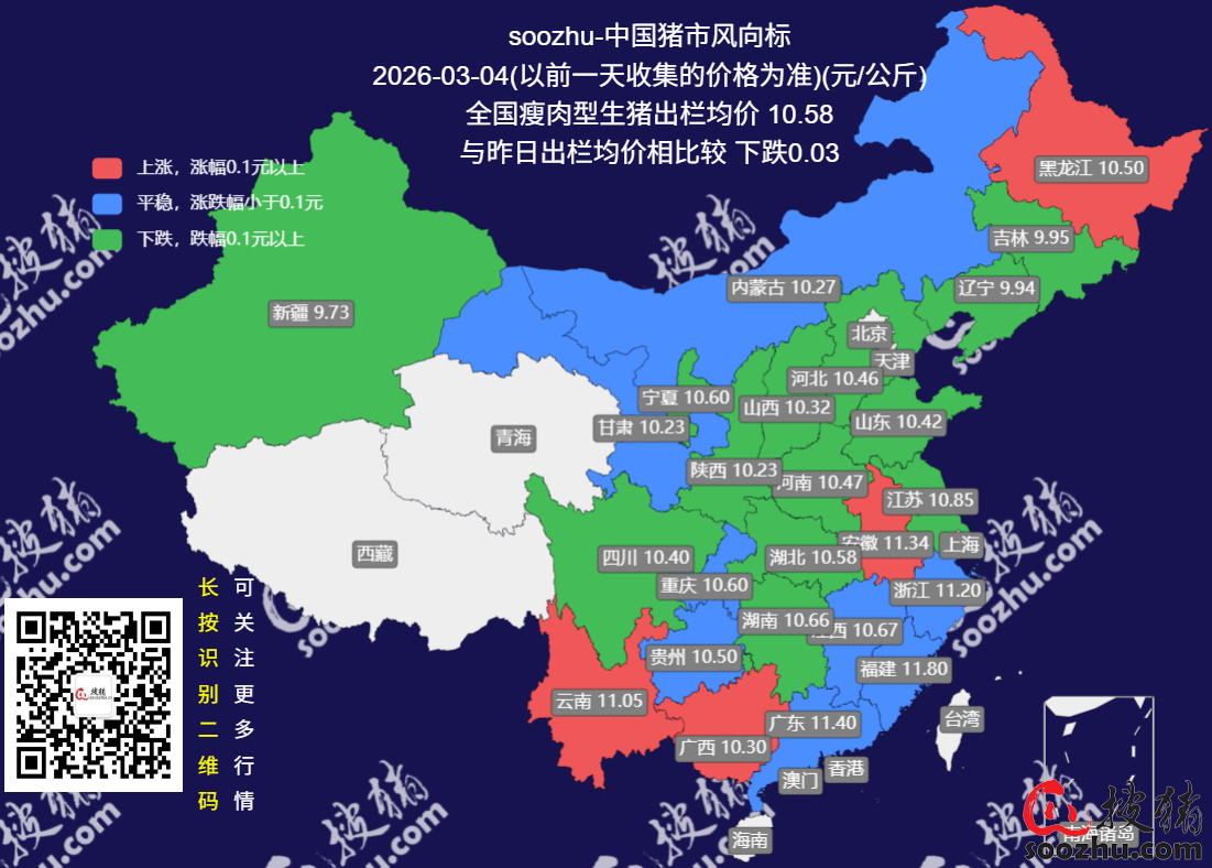 3月4日评:今日全国瘦肉型猪出栏均价10.58元/公斤