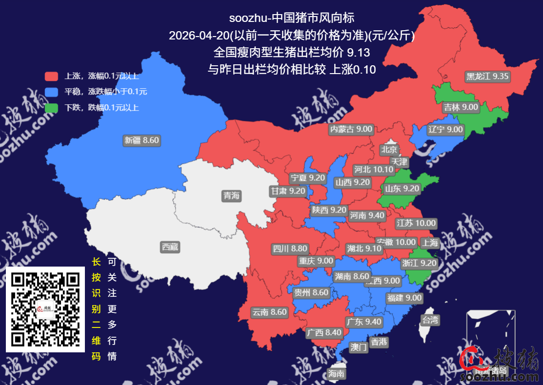 4月20日评:今日全国瘦肉型猪出栏均价9.13元/公斤