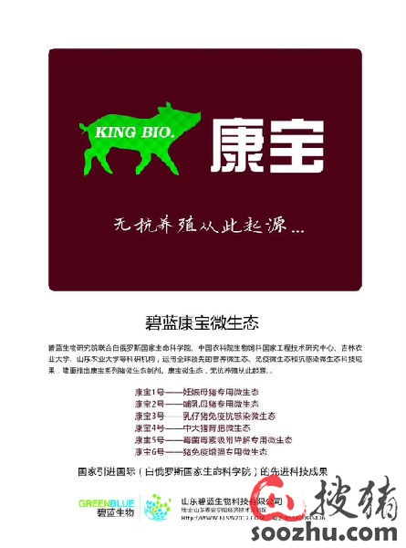 康宝2号: 专门针对哺乳母猪开发的一款复合功能抗感染微生态制剂产品,调节肠道菌群,提高母猪的泌乳量及乳汁质量,增加仔猪断奶重,提高断奶发情配种率。