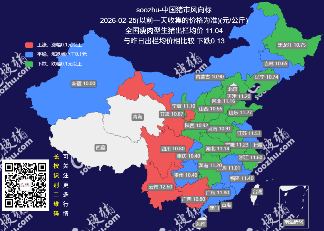今日全国瘦肉型猪出栏均价11.04元/公斤,较昨日下跌了0.13元/公斤[详情]